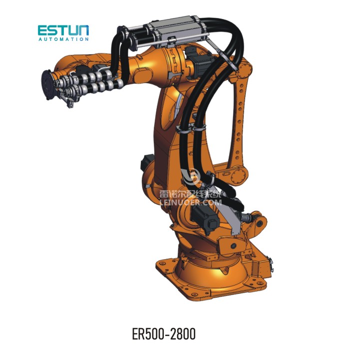 品牌:ESTUN型號(hào):ER500-2800方案:彈簧雙管管線包方案,軸1-6,波紋管Φ68應(yīng)用:搬運(yùn)等